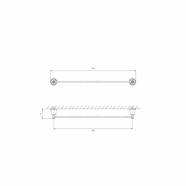 Latime: 65 cm, inaltime: 5 cm, distanta de la perete: 8 cm