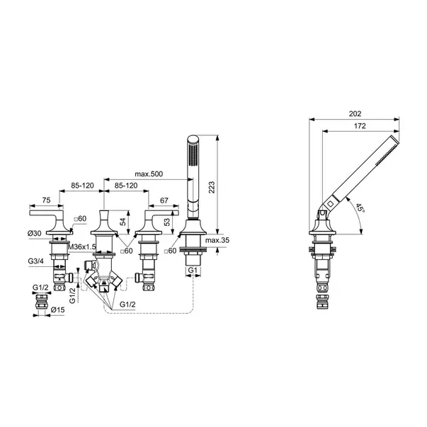 Specificatii tehnice Baterie cada - dus Ideal Standard Atelier Joy Neo gri Magnetic Grey 4 elemente: