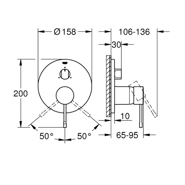 Specificatii tehnice Baterie cada - dus incastrata Grohe Essence 3 iesiri crom periat Supersteel fara corp ingropat: