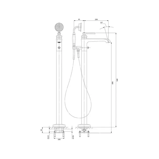 Specificatii tehnice Baterie cada monocomanda montaj pe pardoseala cupru periat Omnires Armance :