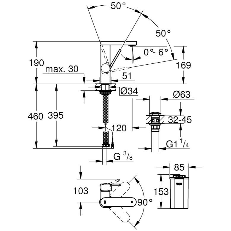 Descoperă bateria chiuvetă baie Grohe Plus cu pipă pivotantă și afișaj LED, de dimensiune medie. Oferă funcționalitate și design modern pentru baia ta!