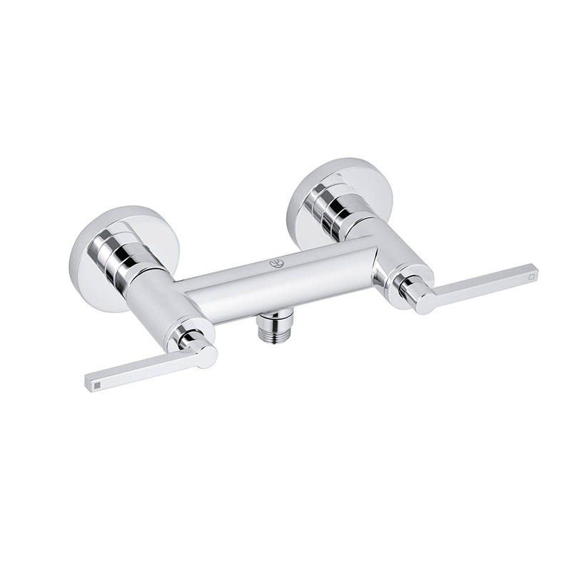 Bateria de duș Kludi Nova Fonte este o baterie dublă comandă, cu mânere aripă, din metal, cu un design minimalist și elegant. Capul ceramic asigură o pornire lină a jetului de apă, fără stropi.