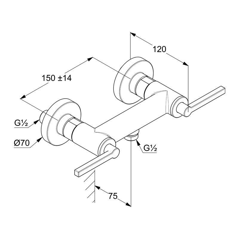 Bateria este montată pe perete, are protecție împotriva fluctuațiilor de presiune a apei și un debit de 21 l/min la 3 bari. Racordul este de tip excentrice S.