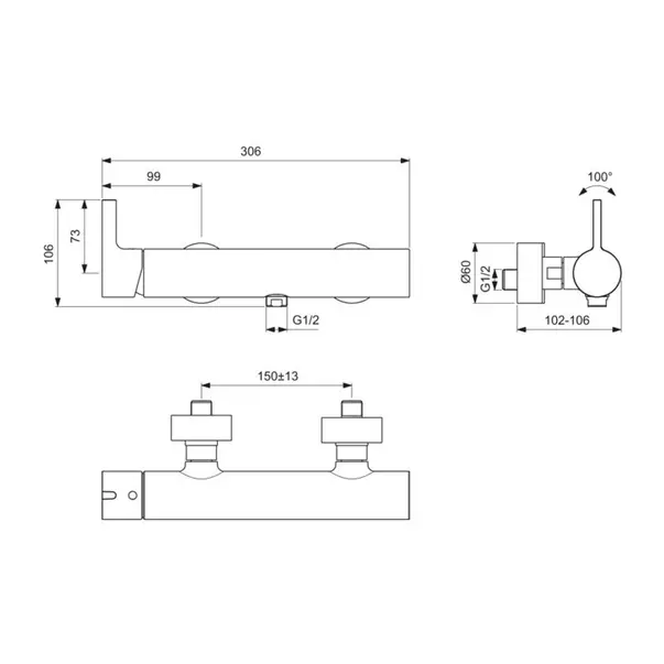 Specificatii tehnice Baterie dus Ideal Standard Atelier Joy argintiu Silver Storm monocomanda: