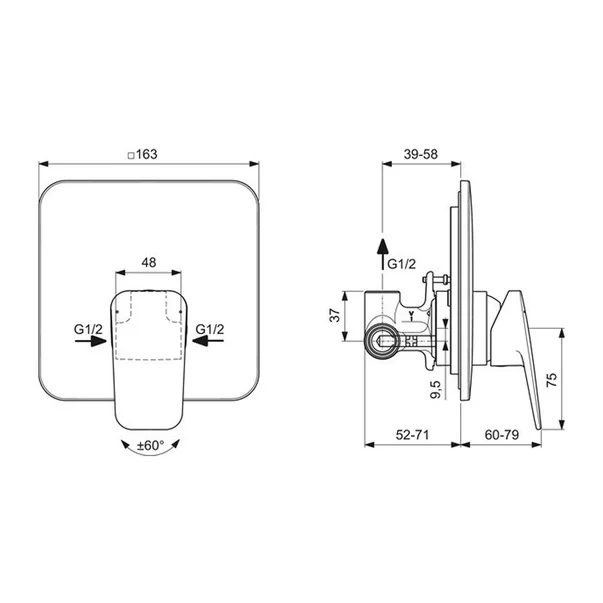 Specificatii tehnice Baterie dus incastrata Ideal Standard Ceraplan negru mat cu corp ingropat: