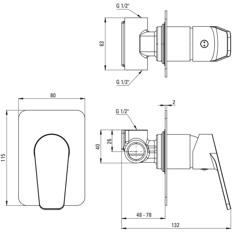 Specificatii tehnice baterie dus Deante Jasmin incastrata negru:
