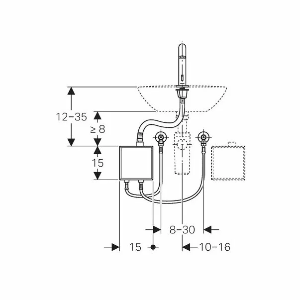 Baterie electronica pentru lavoar Geberit Piave, alimentata de la retea, potrivita pentru cutii functionale aparente