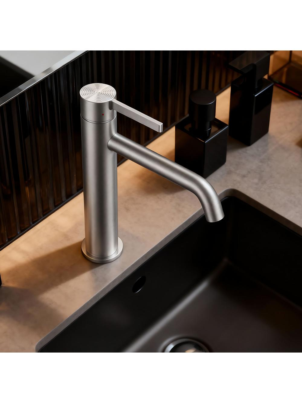 Adaugă stil și funcționalitate băii tale cu bateria înaltă pentru lavoar Rea Foster în finisaj nichel periat. Cu designul său modern și durabilitatea garantată, această baterie impresionează prin fiecare detaliu. Finisajul nichel periat conferă un aspect elegant și este ușor de întreținut. Corpul înalt se potrivește perfect cu lavoarele moderne, asigurând confort în utilizare. Fabricată din alamă durabilă, bateria Rea Foster este construită pentru rezistență îndelungată. Ornamentația striată de pe mâner adaugă un plus de rafinament, în timp ce cartușul ceramic de înaltă calitate permite ajustarea lină a debitului de apă. Cu Rea Foster, te bucuri de un design aparte și de confortul pe care îl meriți în baia ta.