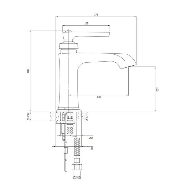 Specificatii tehnice Baterie lavoar alama periata Omnires Armance: