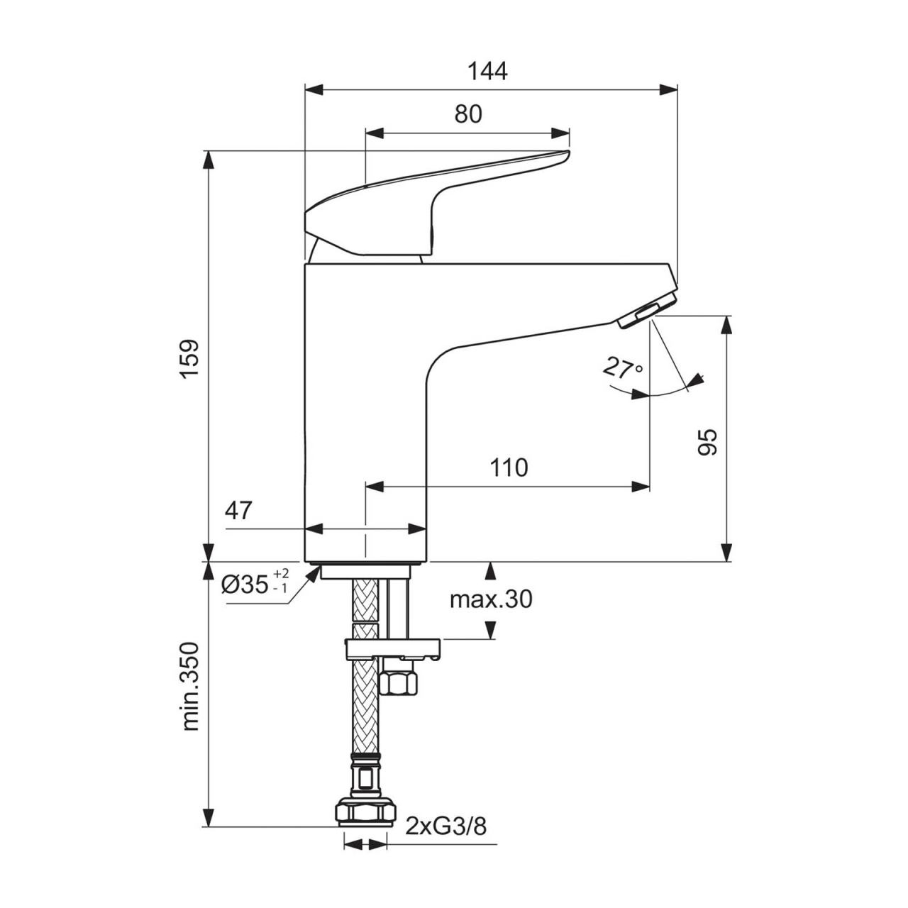 Specificatii tehnice Baterie lavoar Ideal Standard Ceraflex Grande: