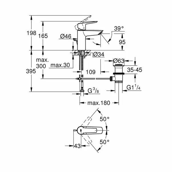 Specificatii tehnice Baterie lavoar Grohe Start S crom lucios cu ventil Pop-Up: