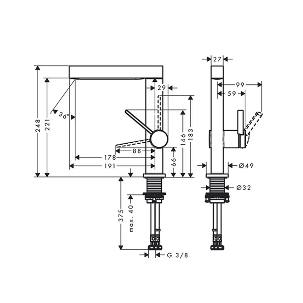 Dusul Finoris, discret integrat în robinetul subțire, se retrage ușor înapoi în poziția sa inițială după utilizare. Cu Finoris și tehnologia ComfortZone, baia devine o zonă relaxantă chiar și într-un mediu dinamic. ComfortZone de la Hansgrohe asigură un grad mare de confort, o utilizare ușoară și mai puține stropiri la chiuvetă.
