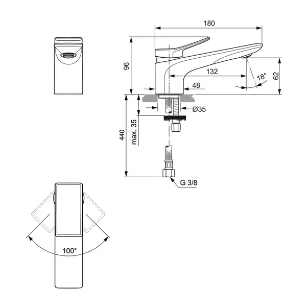 Specificatii tehnice Baterie lavoar Ideal Standard Atelier Conca gri Magnetic Grey: