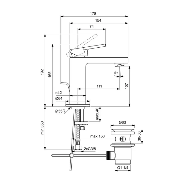 Specificatii tehnice Baterie lavoar Ideal Standard Atelier Extra auriu periat cu ventil Pop-Up metalic: