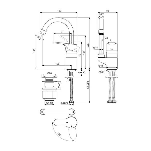 Specificatii tehnice Baterie lavoar Ideal Standard Cerabase BlueStart crom cu ventil Click-Clack: