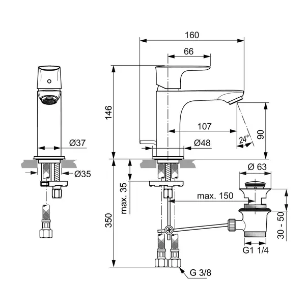 Specificatii tehnice Baterie lavoar Ideal Standard Connect Air auriu periat cu ventil metalic: