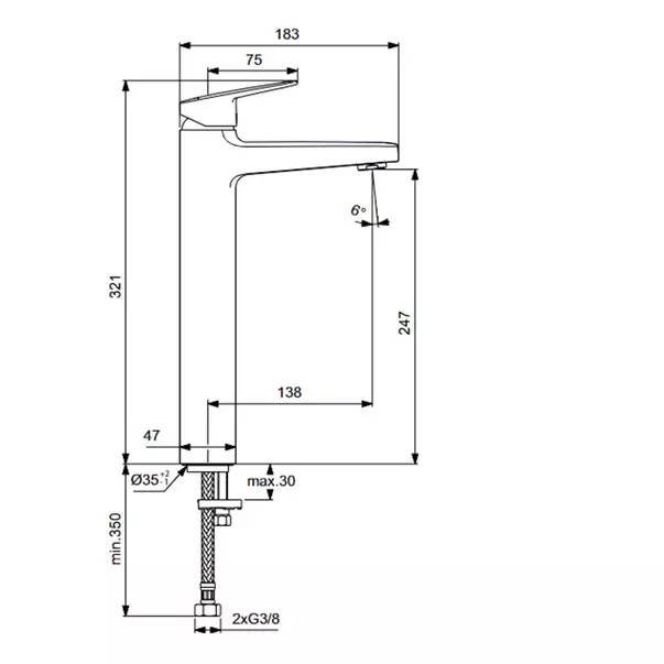 Specificatii tehnice Baterie lavoar inalta cu monocomanda Ideal Standard Ceraplan: