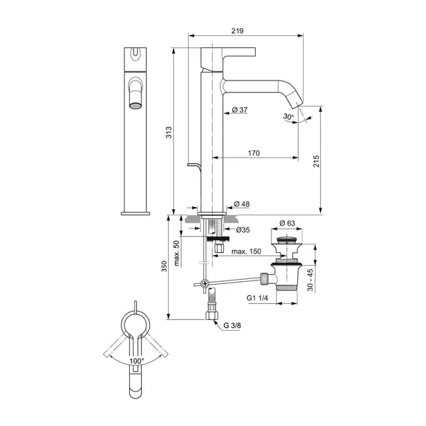 Specificatii tehnice Baterie lavoar inalta Ideal Standard Atelier Joy cu ventil Pop-Up auriu periat: