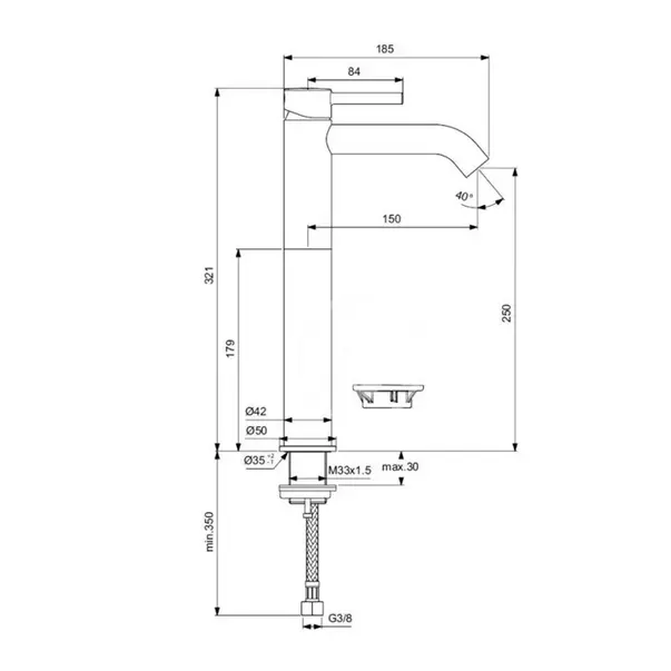 Specificatii tehnice Baterie lavoar inalta Ideal Standard Ceraline monocomanda finisaj crom lucios: