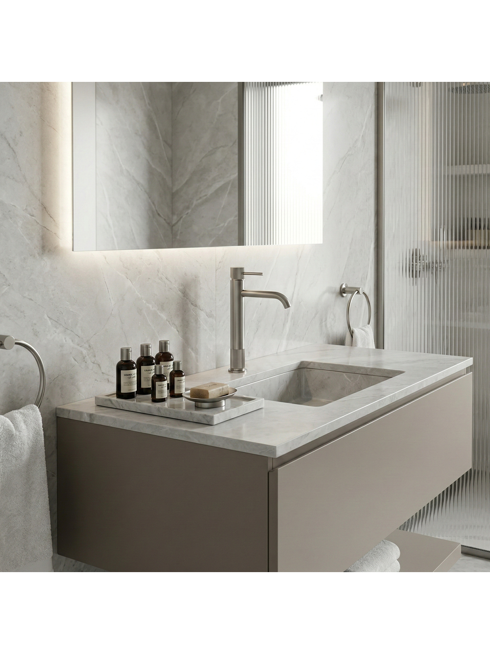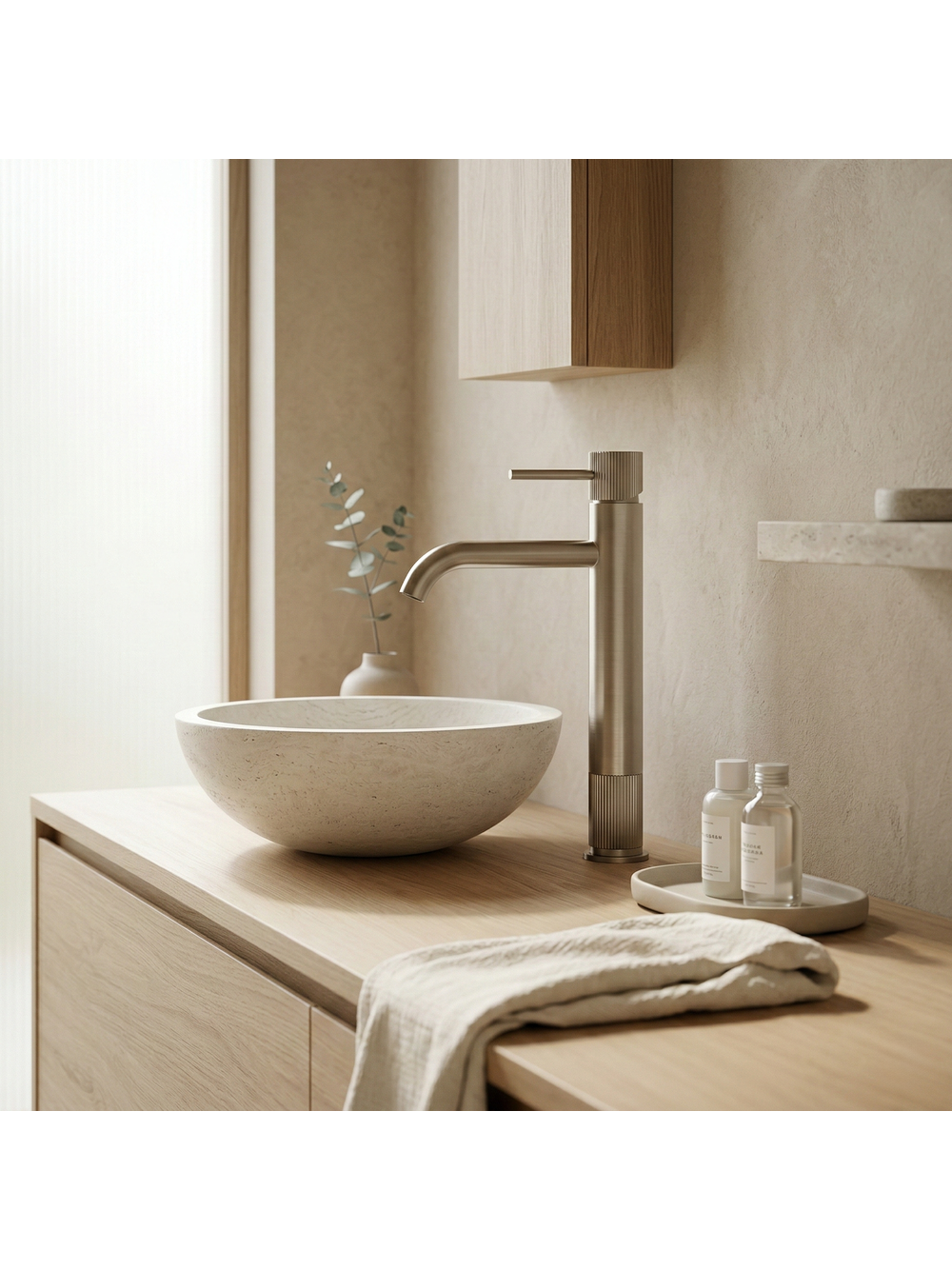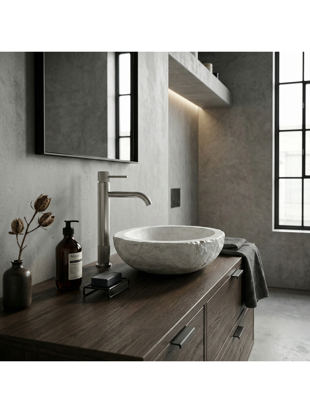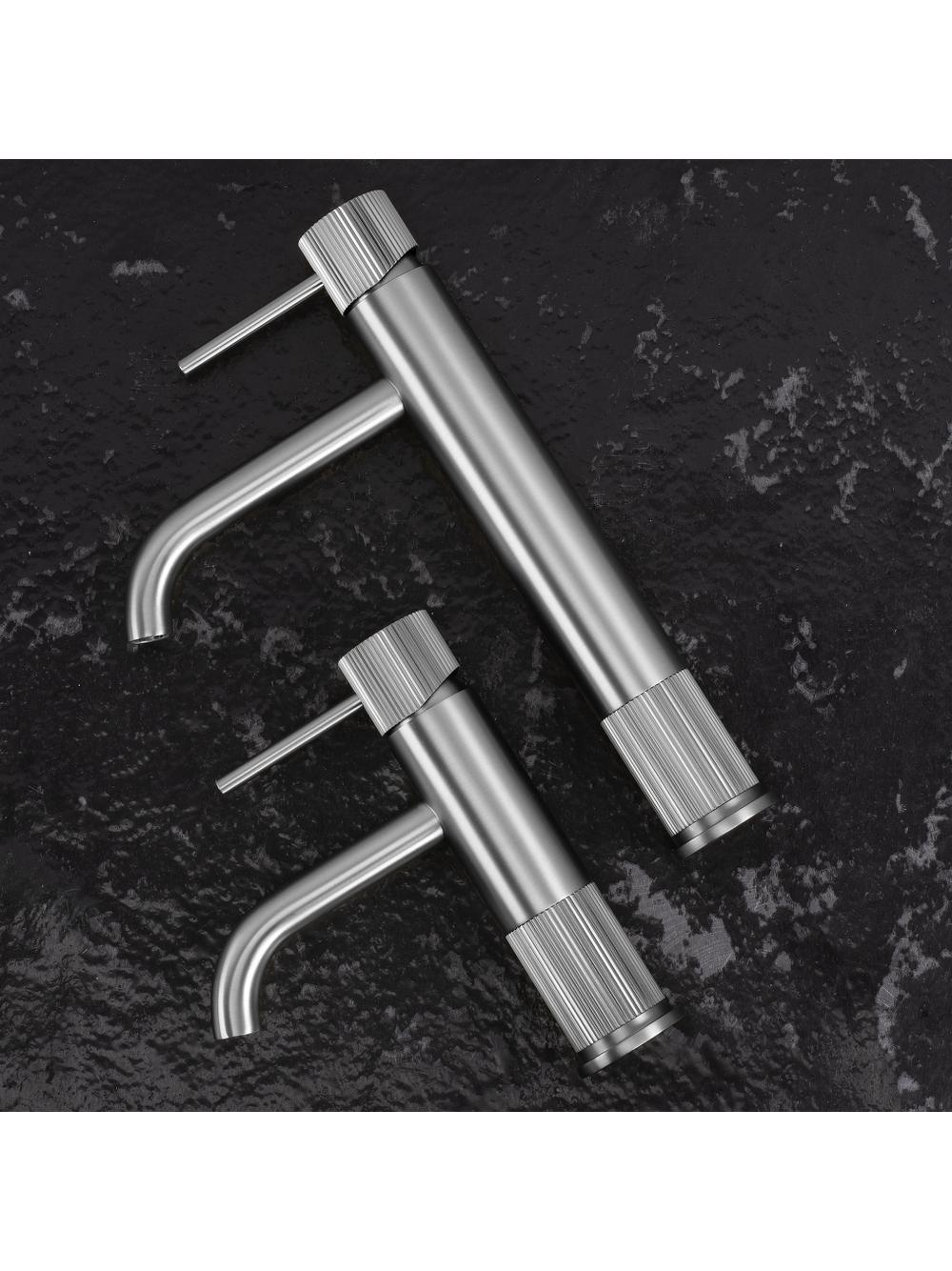 Pune în valoare designul modern al băii tale selectând bateria înaltă pentru lavoar Rea Lungo Stripe în finisaj Nichel Periat. Această variantă elegantă și înaltă este ideală pentru lavoarele pe blat contemporane, unde atât aspectul cât și funcționalitatea sunt importante. Forma cilindrică a corpului, detaliile decorative striate și pipa ușor rotunjită contribuie la un aspect elegant și armonios, potrivit în special pentru interioarele minimaliste, loft și premium. Construcția înaltă oferă un confort sporit și se potrivește perfect cu lavoarele pe blat cu margini înalte. Finisajul Nichel Periat conferă o nuanță rece și satinată, adăugând un aer modern și facilitând curățarea. Designul cu dungi verticale adăugă un element deosebit, distinctiv față de modelele tradiționale. Aeratorul integrat optimizează consumul de apă, oferind un jet moale și uniform. Maneta ergonomică cu monocomandă permite reglarea ușoară a temperaturii și a debitului de apă. Bateria pentru lavoar Rea Lungo Stripe în finisaj Nichel Periat este alegerea perfectă pentru cei care apreciază detalii bine gândite și eleganță atemporală într-un cadru modern. Silueta subțire combinată cu textura striată decorativă transformă acest model într-un element de impact în zona lavoarului, în timp ce nichelul periat se asortează cu piatra deschisă, betonul arhitectural și lemnul într-un mod excelent.