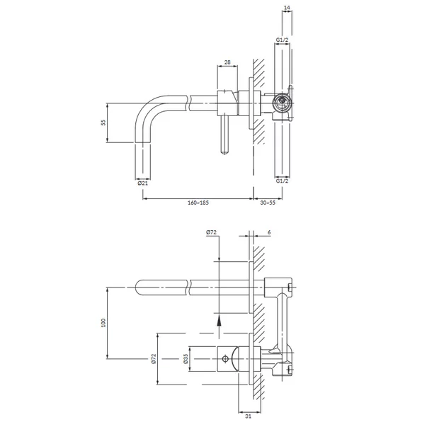 Lungimea robinetului: 16-18.5 cm