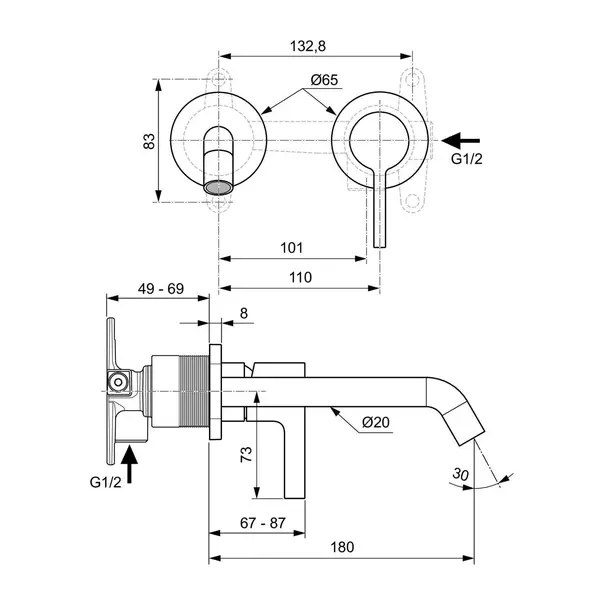 Specificatii tehnice Baterie lavoar incastrata Ideal Standard Atelier Joy pipa 18 cm auriu periat: