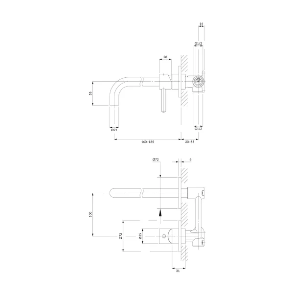 Lungimea robinetului de la suprafata placata: 18,5 cm