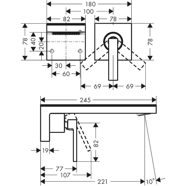 Specificatii tehnice Baterie lavoar monocomanda incastrata Hansgrohe Axor MyEdition 22.1 cm: