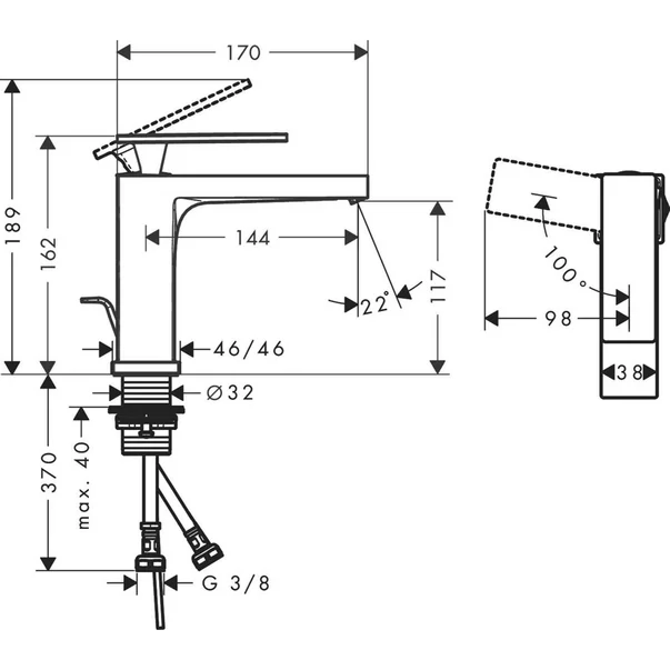 Specificatii tehnice Baterie lavoar negru mat Hansgrohe Tecturis E 110 CoolStart EcoSmart+: