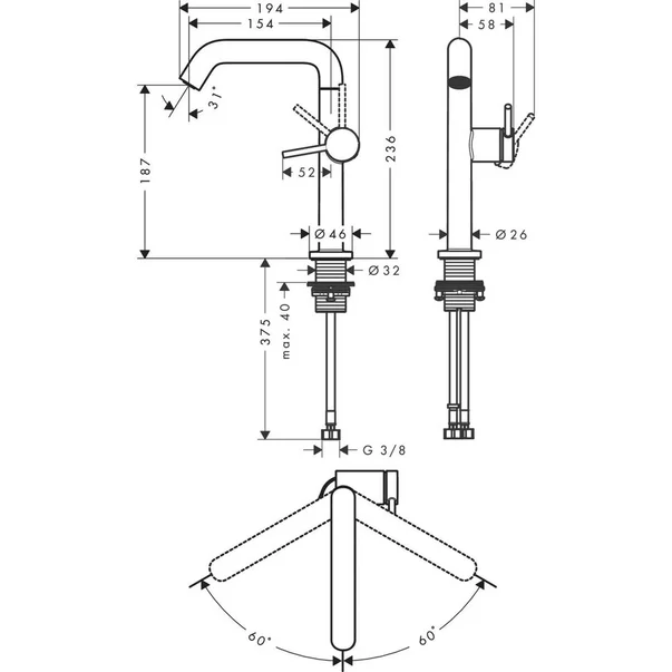 Specificatii tehnice Baterie lavoar negru mat Hansgrohe Tecturis S 210 Fine CoolStart EcoSmart+:
