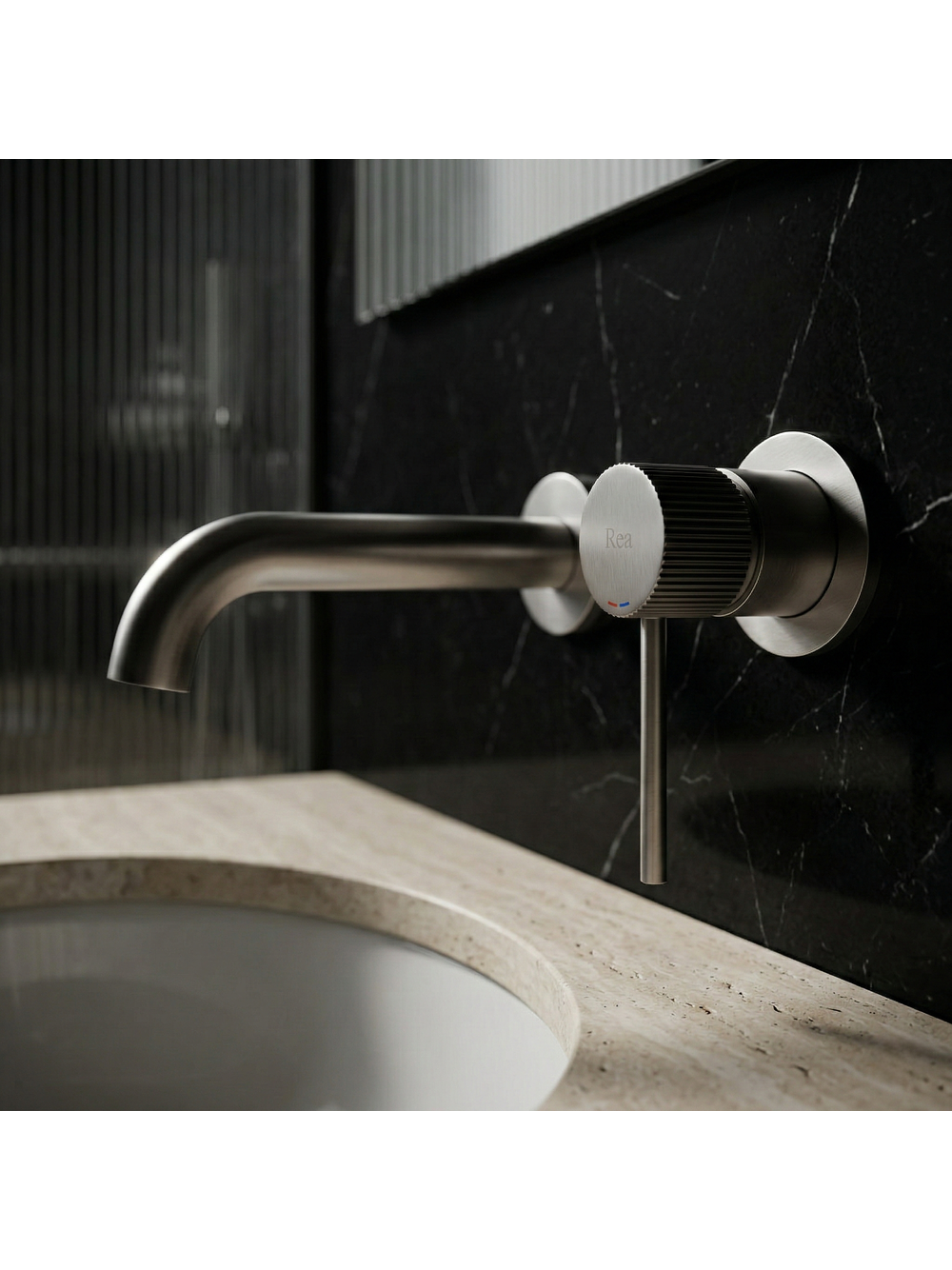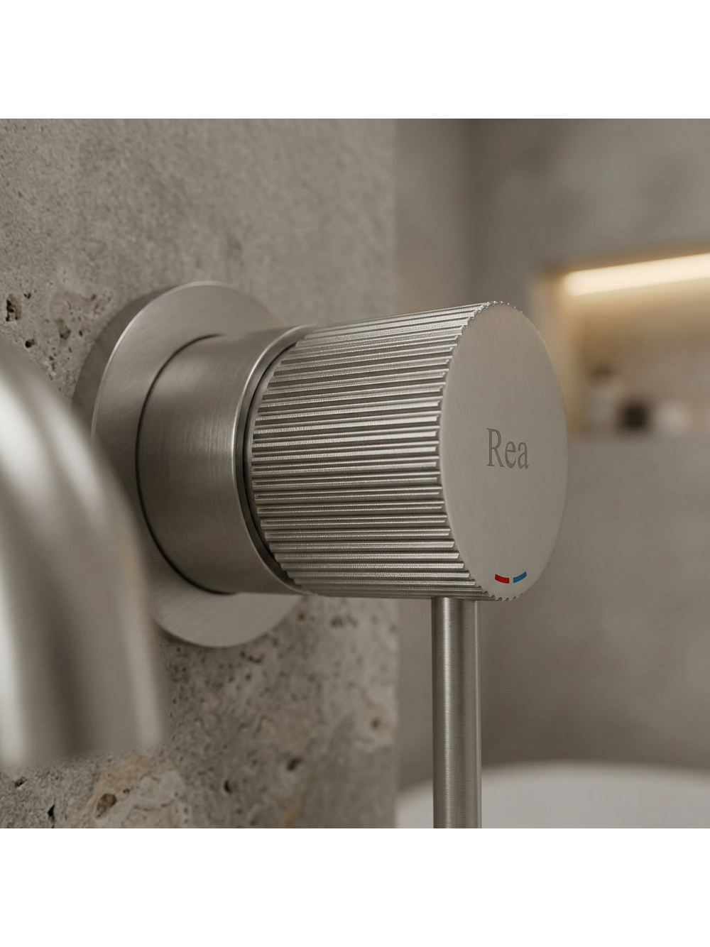 Cu corp din alamă pentru durabilitate și stabilitate, bateria Rea Lungo Stripe oferă o funcționare precisă datorită cartușului ceramic. Montajul încastrat economisește spațiu și facilitează curățarea, oferind o soluție minimalistă și elegantă.