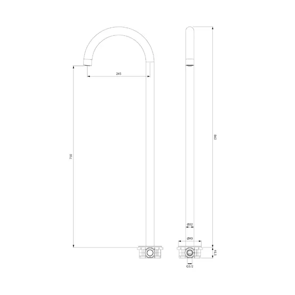 Specificatii tehnice Pipa cada freestanding Omnires Y negru: