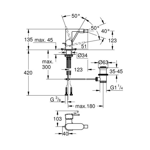 Specificatii tehnice Baterie bideu Grohe Plus antracit periat Hard Graphite monocomanda cu ventil Pop-Up: