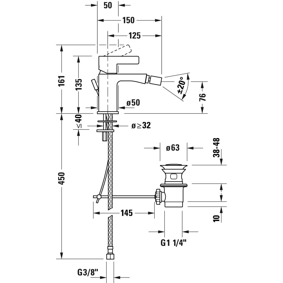 Specificatii tehnice Duravit D-Neo baterie bideu stativ crom DE2400001010: