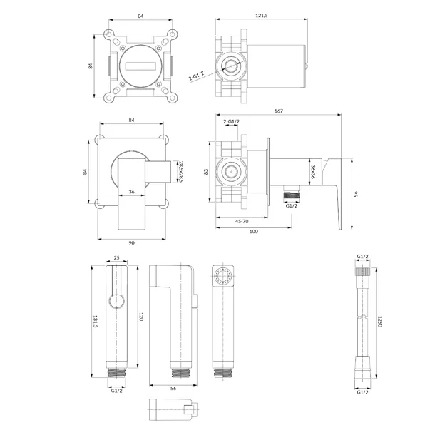 Specificatii tehnice sistem bideu pentru montaj ascuns Omnires Fresh crom: