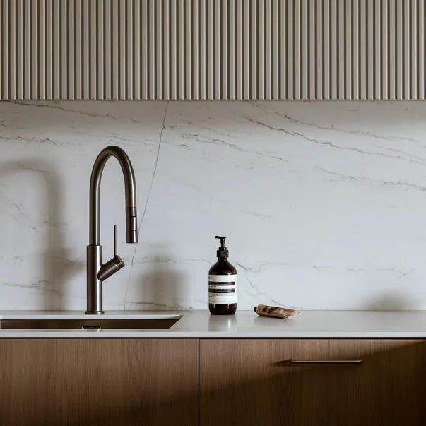 Bateriile de bucătărie Omnires Bend se disting prin forma lor uimitoare, minimalistă, inspirată de cercuri și arcade. Această baterie, cu o înălțime de 44,9 cm, este echipată cu o gură de scurgere pivotantă extensibilă cu pulverizator cu două funcții, ce permite extinderea razei de acțiune a fluxului de apă și facilitează utilizarea bateriei. Fabricată din alamă de înaltă calitate, bateria este dotată cu un cartuș ceramic superior. Tehnologiile inovatoare asigură cel mai înalt nivel de confort în utilizare și reducerea consumului de apă cu 50%.
