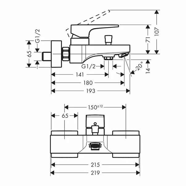 Specificatii tehnice Baterie cada - dus Hansgrohe Metropol alb mat 18 cm:
