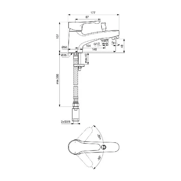 Specificatii tehnice Baterie cada - dus Ideal Standard Alpha finisaj crom lucios monocomanda: