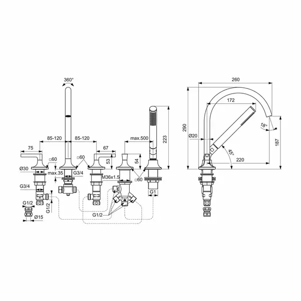 Specificatii tehnice Baterie cada - dus Ideal Standard Atelier Joy Neo crom lucios 5 elemente: