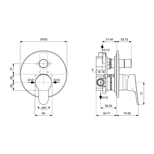 Specificatii tehnice Baterie cada - dus incastrata Ideal Standard Cerabase crom lucios cu corp ingropat inclus: