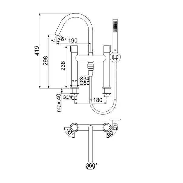 Specificatii tehnice Baterie cada Ideal Standard Atelier Joy argintiu Silver Storm cu set de dus: