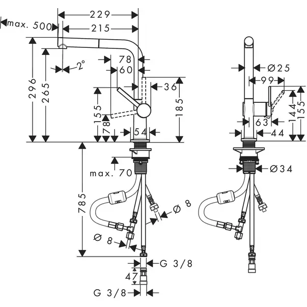 Toate piesele, inclusiv furtunul dus, sunt asortate in culori. Variantele cu dus extensibil pot fi echipate cu sBox pentru a ghida furtunul in siguranta. Compartmentul aditional din unitatea de baza ofera un flux de lucru fluid si mai multa flexibilitate atunci cand se foloseste functia de extractie.