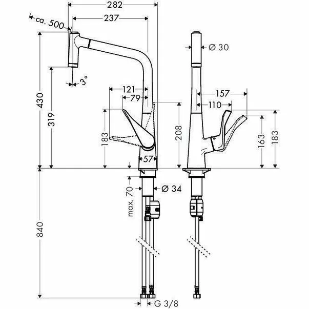 Specificatii tehnice Baterie bucatarie cu dus extractibil Hansgrohe Metris M71 320 crom 2 functii: