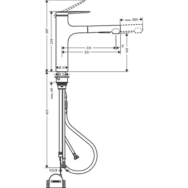 Specificatii tehnice Baterie bucatarie cu dus extractibil Hansgrohe Zesis M33 160 sBox lite cu 2 jeturi: