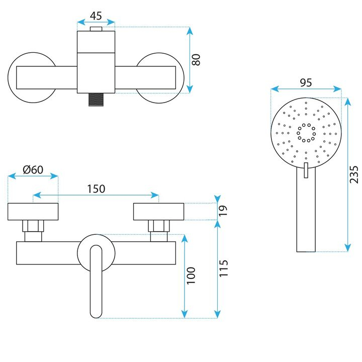 Distanța dintre racorduri: 150 mm