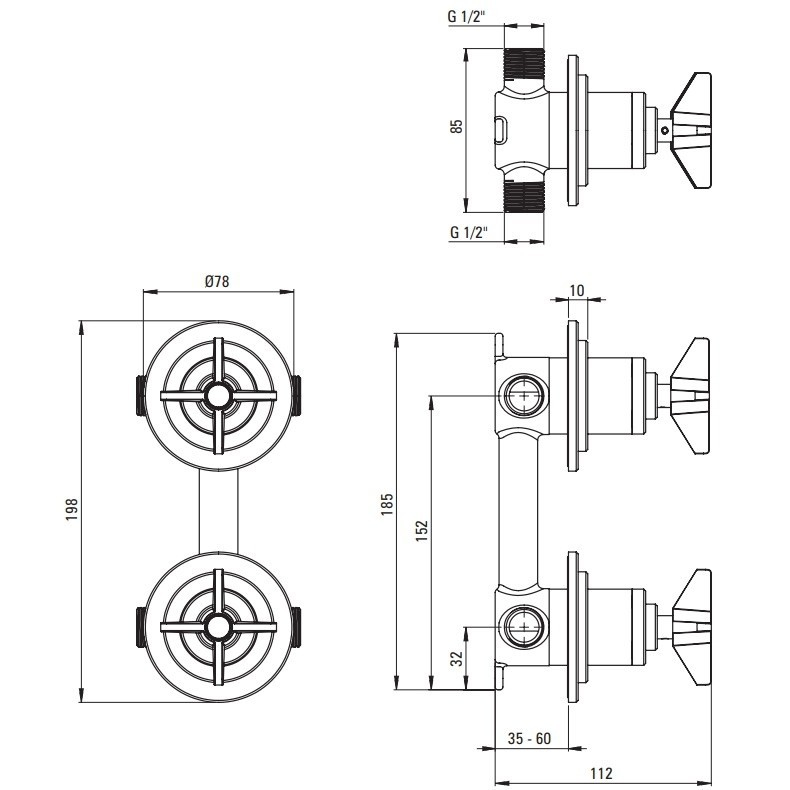 Specificatii tehnice Baterie de dus cu comutator Deante Temisto negru: