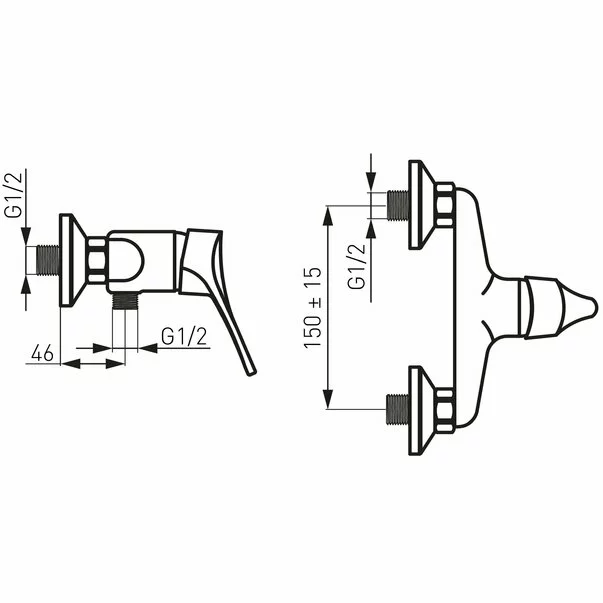 • Caracteristici: Cartus ceramic. Montare pe perete. Racord excentric D1/2 distanta 150 ± 20 mm. Racord dus D1/2. Fara set de dus. Crom
