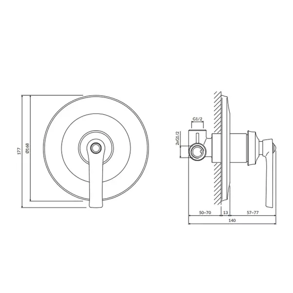 Specificatii tehnice Baterie dus incastrata cupru periat Omnires Armance cu corp ingropat: