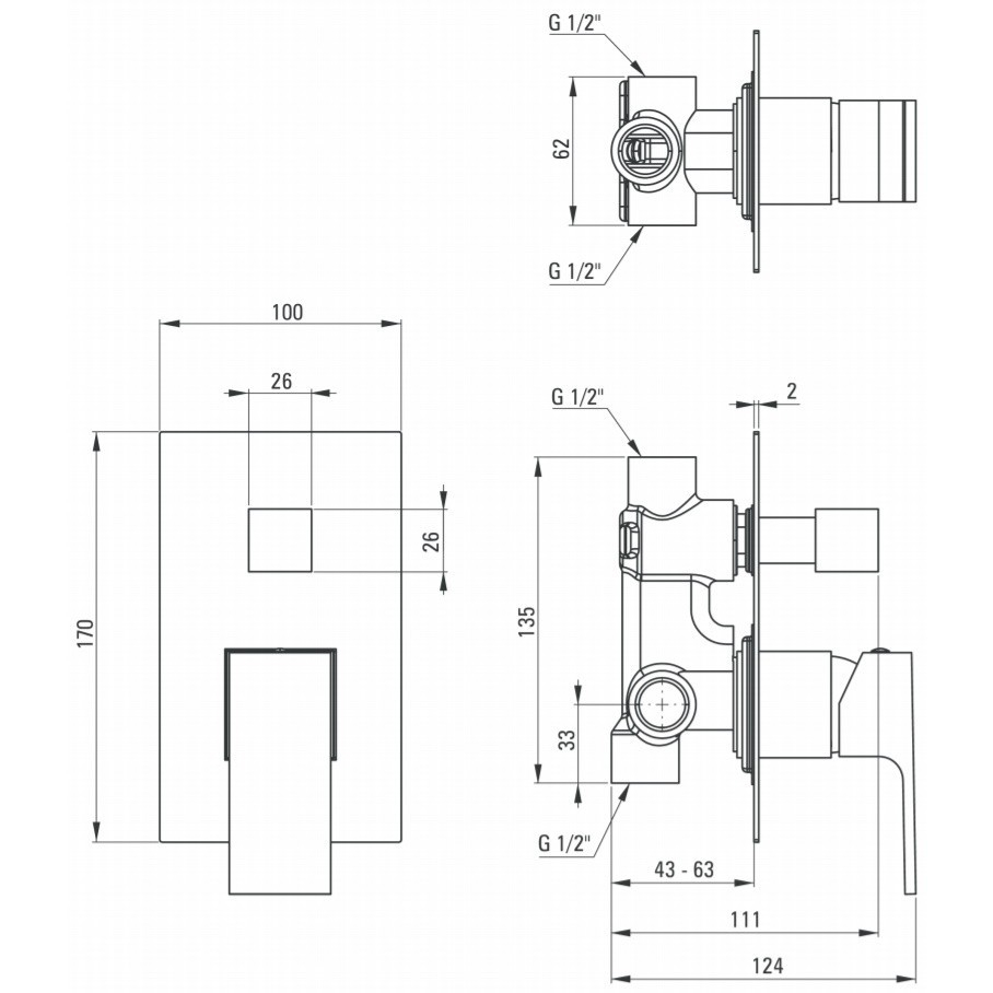 Specificatii tehnice baterie dus Deante Anemon incastrata negru: