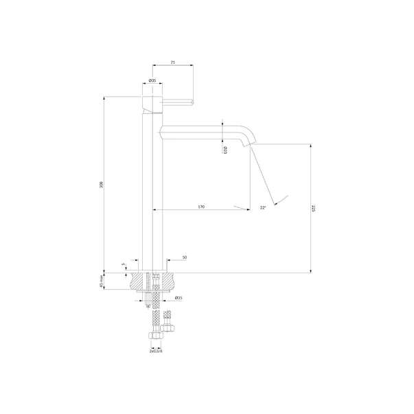 Specificatii tehnice Baterie inalta lavoar Omnires Y cupru: